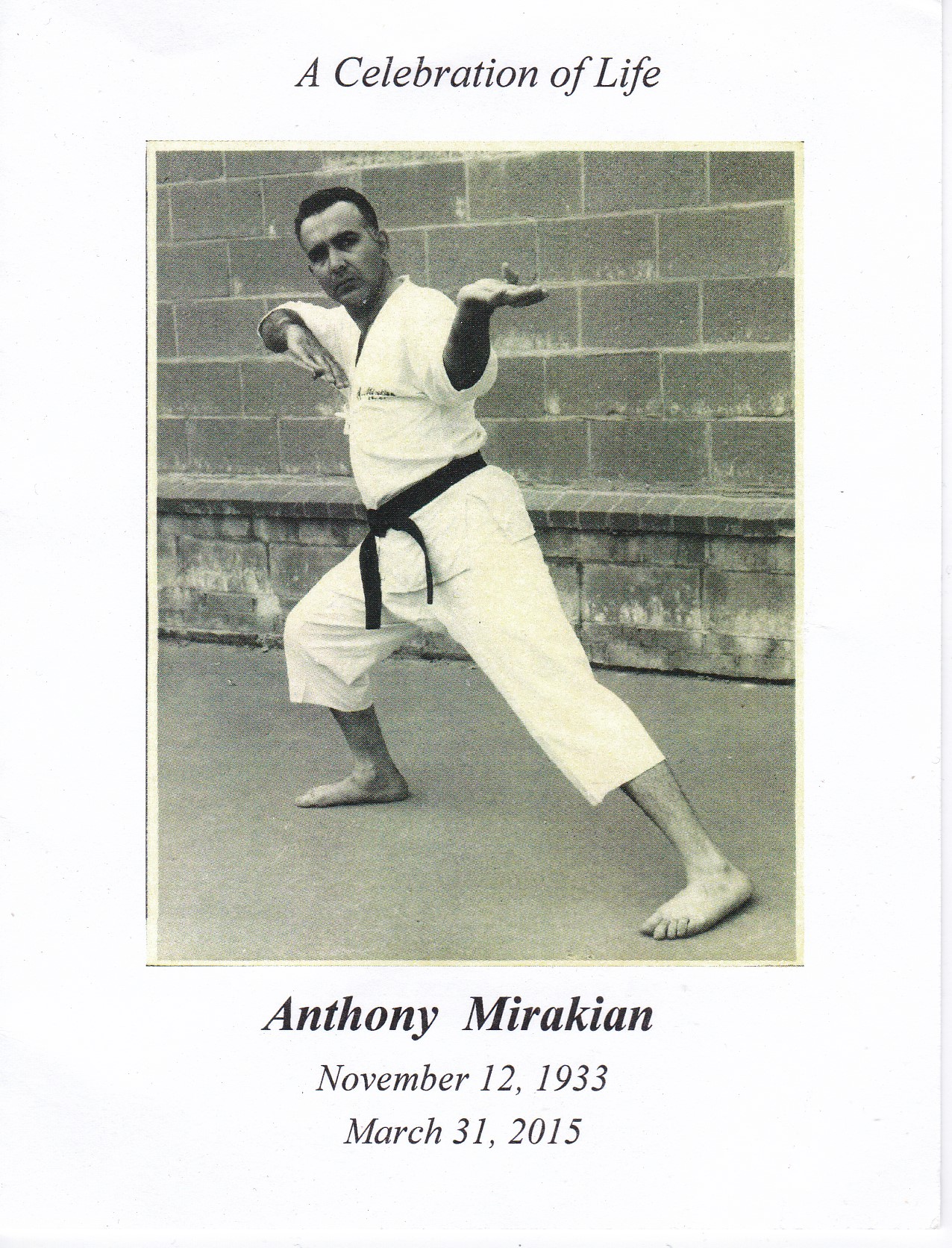 Master Anthony MirakianDojo: 151 Mt. Auburn street, Mirakian Sensei is currently the most (active) senior Meibukan instructor. He started his Goju training under Master Toguchi in the early 1950's while stationed in the Kadena Air Force base in Okinawa. He was accepted as a student by Dai Sensei Yagi later on. Dai Sensei Yagi promoted Mirakian Sensei to San Dan (3rd degree blackbelt) in 1959 and asked him to oversee the development of Meibukan in all of North America (and actually the rest of the world outside Okinawa). He was given the certificate of General Manager of Meibukan International. Mirakian Sensei left Okinawa and came back to the USA in November 1959 and started teaching Meibukan Gojuryu in the purest form in the Boston area in the early 1960s. In 1990, Dai Sensei Yagi promoted Mirakian Sensei to Kudan (9th degree) Hansei. He is the only North American outside of Okinawa that holds this rank and top honor. The year 2010 marked the fiftieth anniversary of Sensei Mirakian teaching career. |